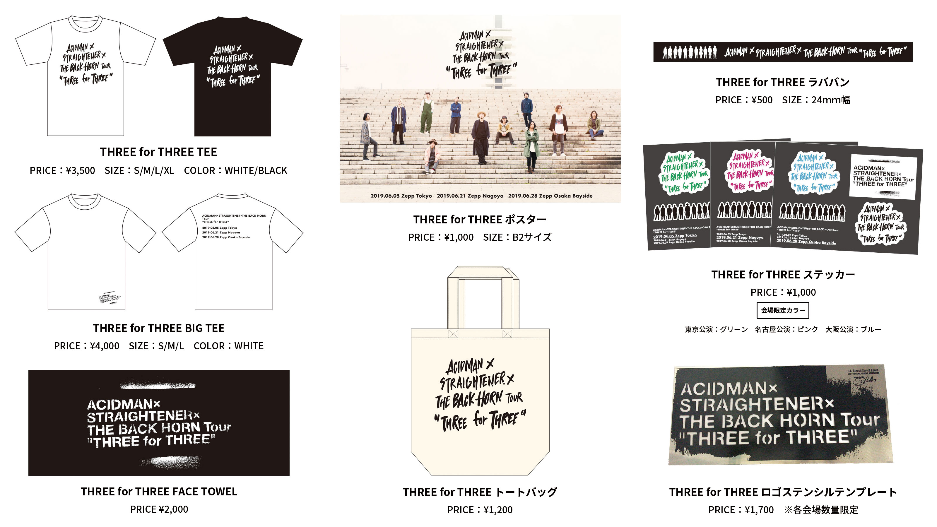 NEWS「ACIDMAN×STRAIGHTENER×THE BACK HORN Tour “THREE for THREE”」グッズ公開!2019.05.31