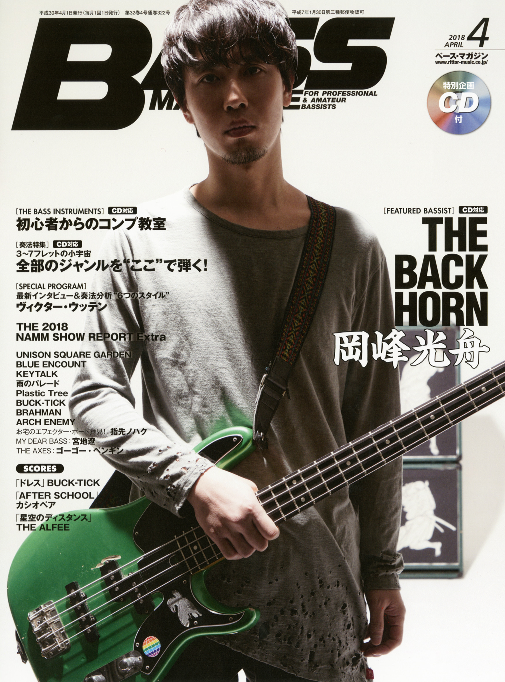 MAGAZINE「ベース・マガジン」2018年4月号の表紙/巻頭企画に岡峰光舟が決定!2018.03.07