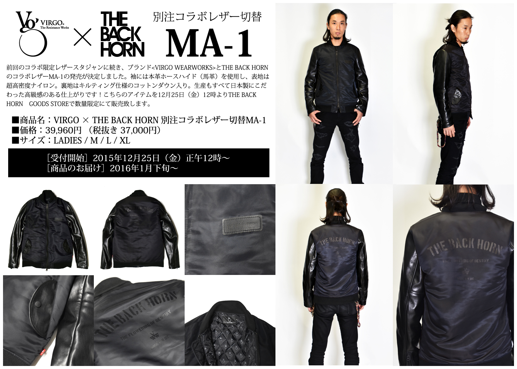 NEWSVIRGO × THE BACK HORN 別注コラボレザー切替MA-1 限定生産で販売開始!2015.12.25
