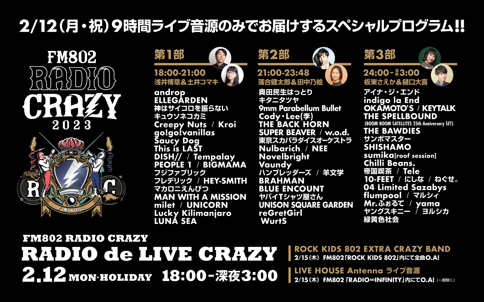 RADIOFM802「RADIO CRAZY RADIO de LIVE CRAZY」LIVE音源OA決定!2024.02.09