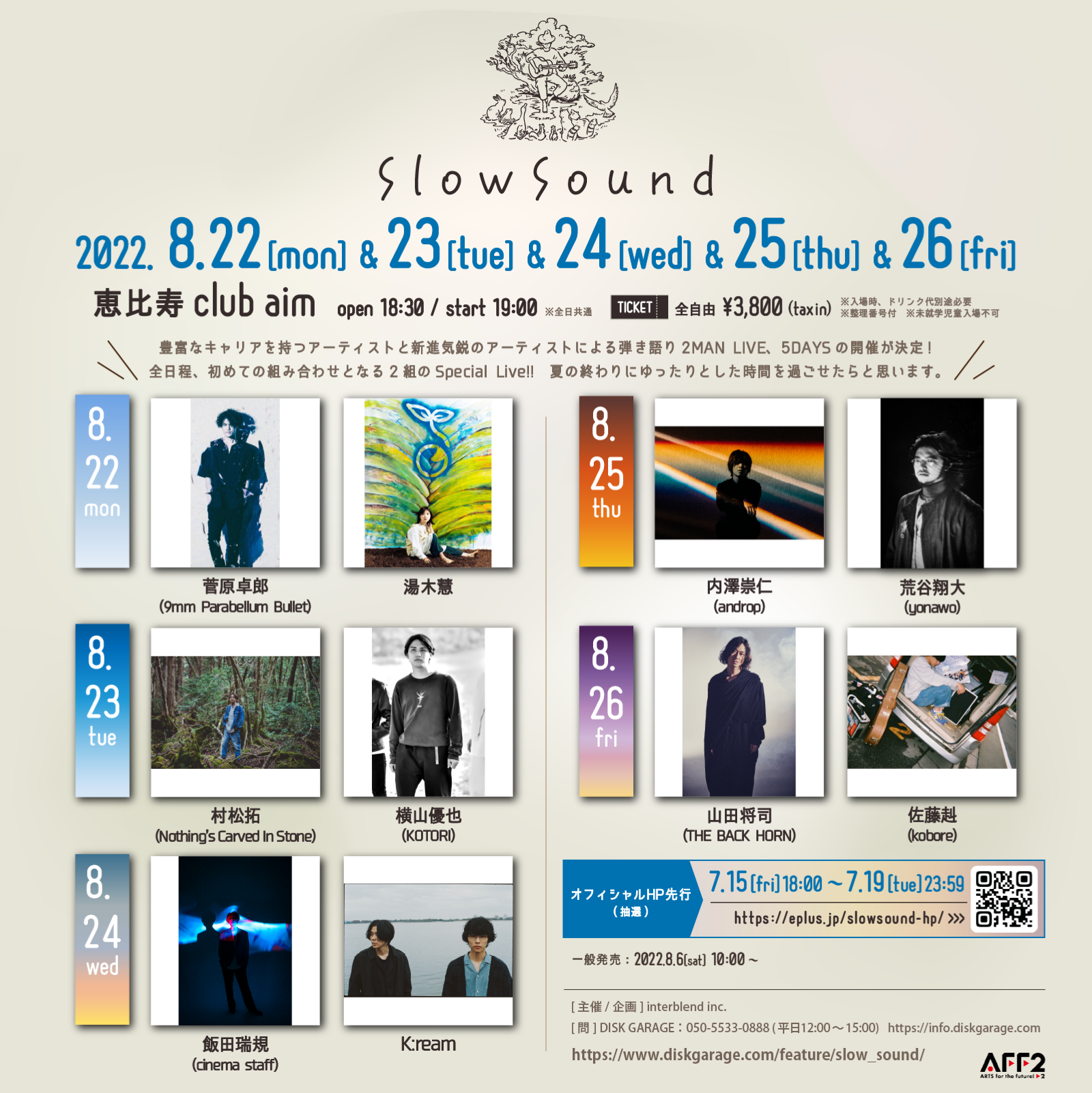 NEWS山田将司8/26(金)「Slow Sound」出演決定!2022.07.15