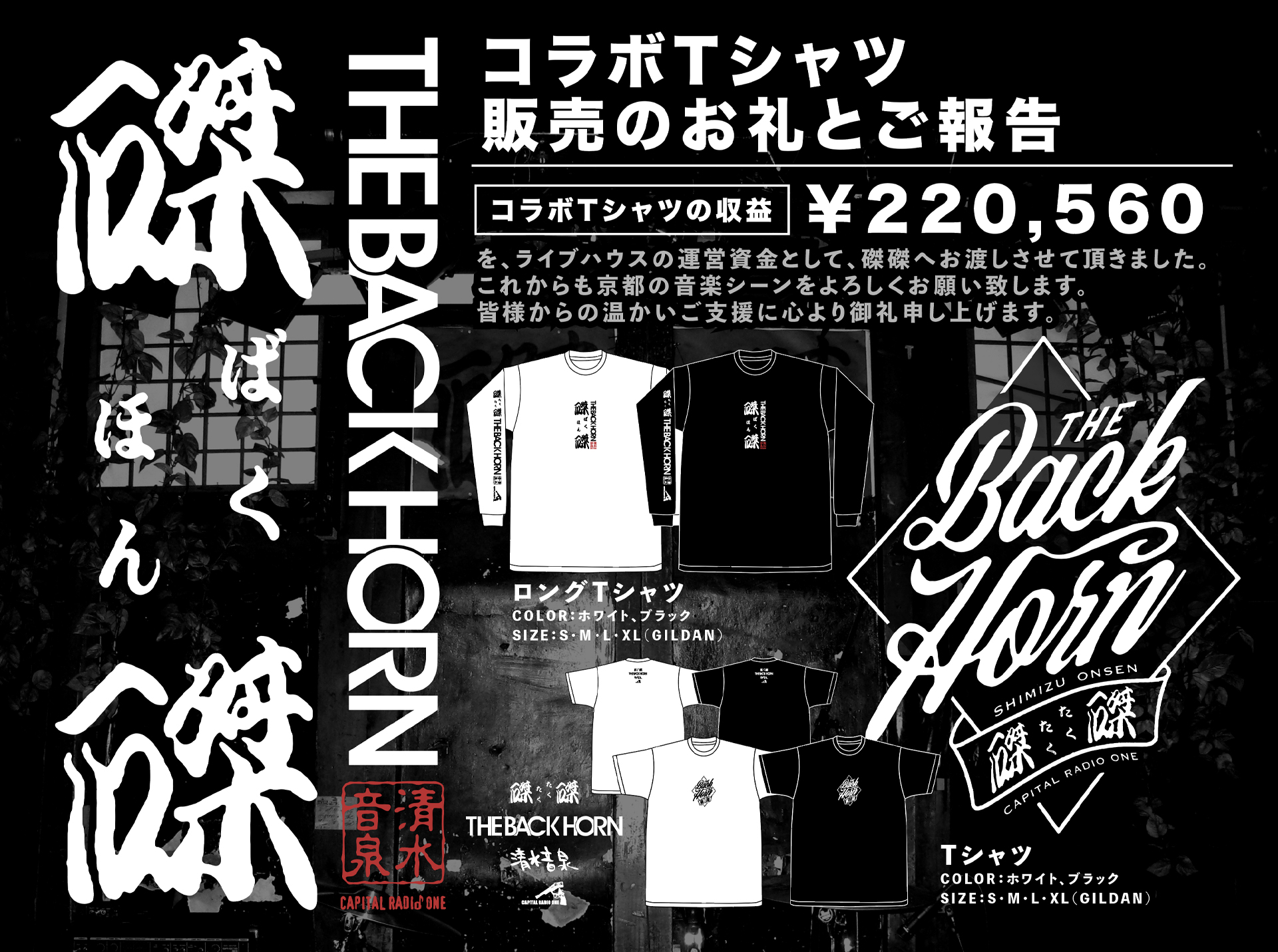 NEWSTHE BACK HORN×磔磔×CAPITAL RADIO ONE×清水音泉 コラボTシャツ販売のお礼とご報告2021.04.26