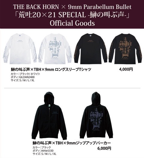 NEWSTHE BACK HORN × 9mm Parabellum Bullet「荒吐20×21 SPECIAL -鰰の叫ぶ声-」グッズ販売2021.04.24