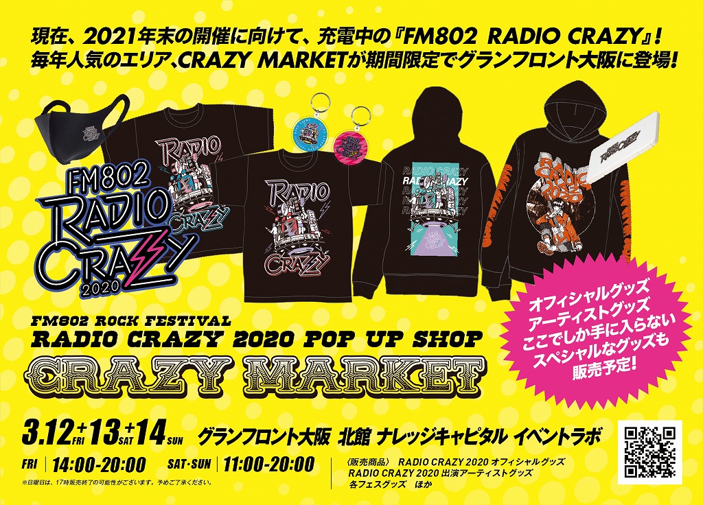 NEWS「FM802 ROCK FESTIVAL RADIO CRAZY 2020 POP UP SHOP CRAZY MARCKET」開催!2021.02.26