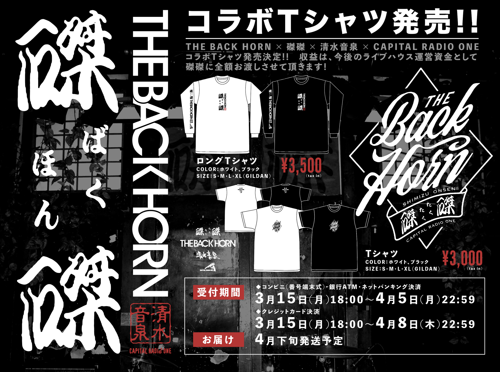 NEWSTHE BACK HORN × 磔磔 × CAPITAL RADIO ONE × 清水音泉 コラボTシャツ発売決定!2021.03.15