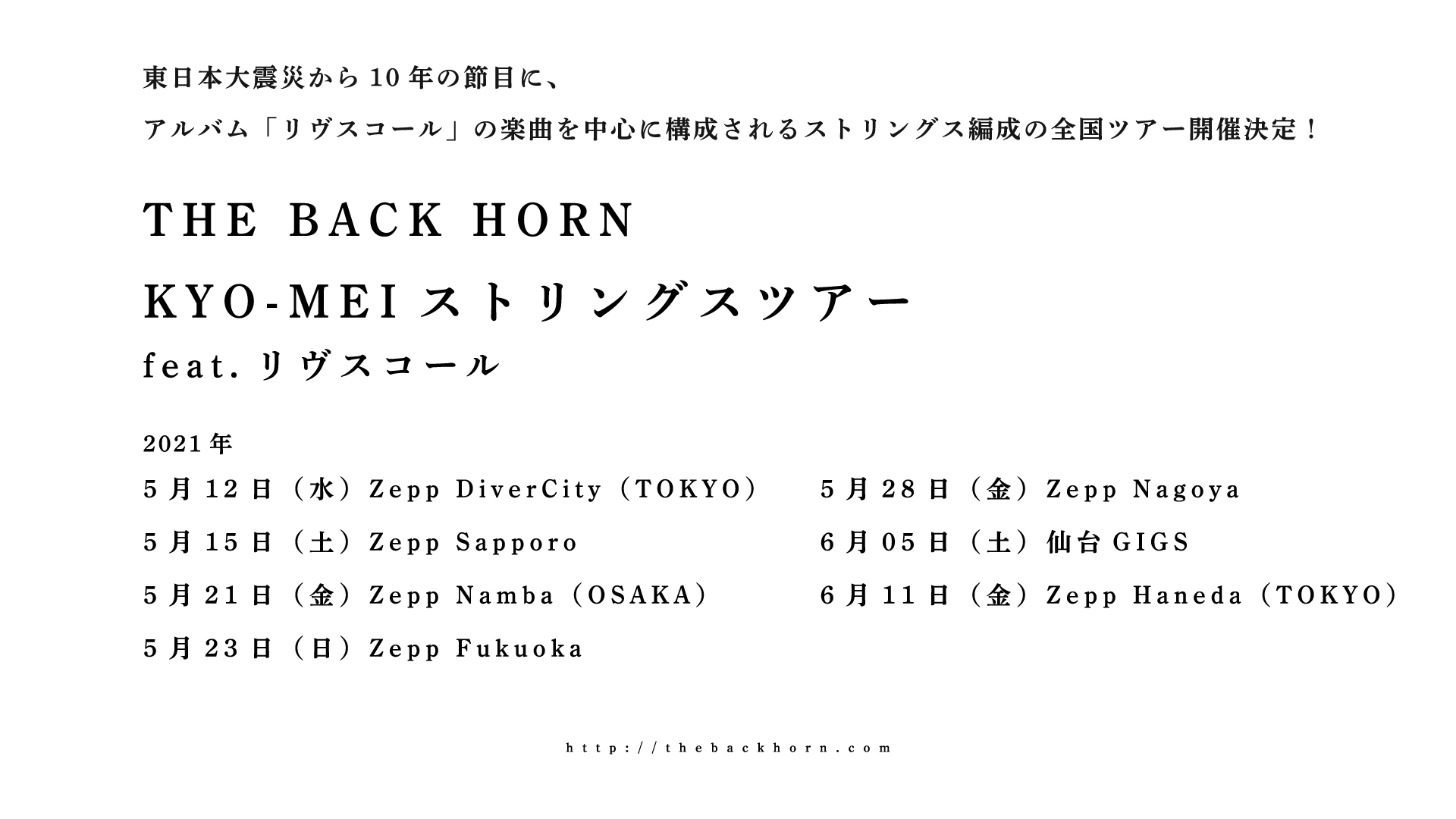 NEWSTHE BACK HORN「KYO-MEIストリングスツアー」feat.リヴスコール 詳細発表!2021.03.19