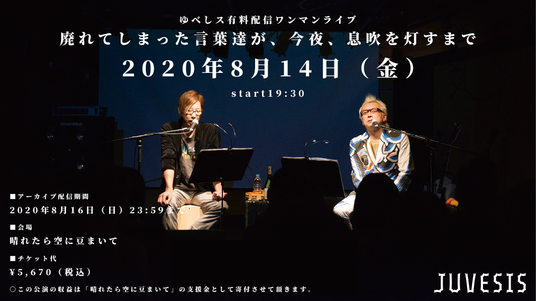 NEWSゆべしス有料配信ワンマンライブ「廃れてしまった言葉達が、今夜、息吹を灯すまで」開催決定!2020.07.09