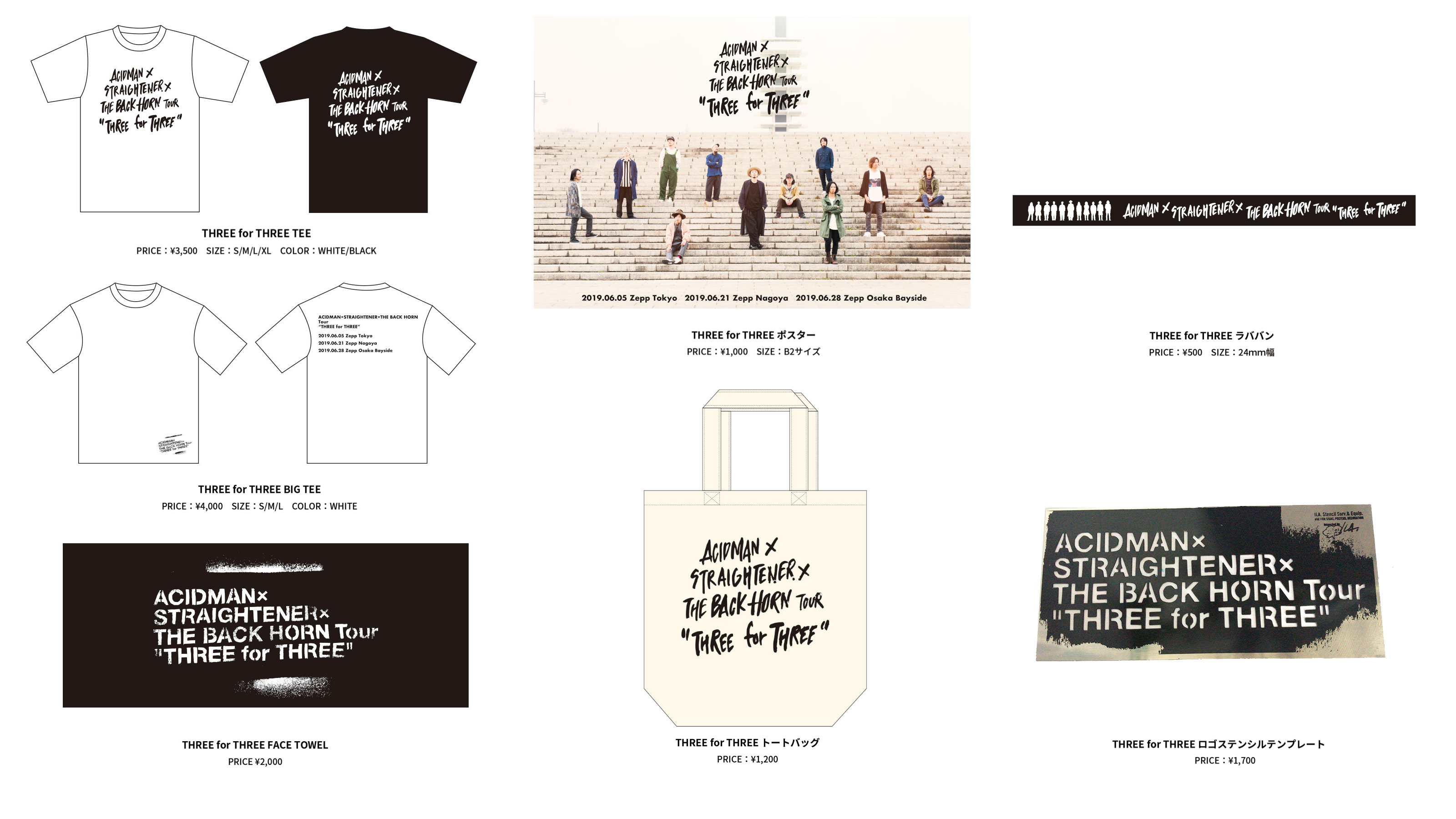 NEWSACIDMAN×STRAIGHTENER×THE BACK HORN Tour “THREE for THREE” オフィシャルGOODS通販決定!2019.07.29