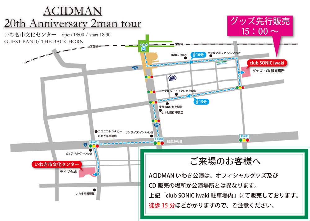 NEWSACIDMAN 20th Anniversary 2man tour いわき市文化センター公演グッズ販売のお知らせ2017.03.09