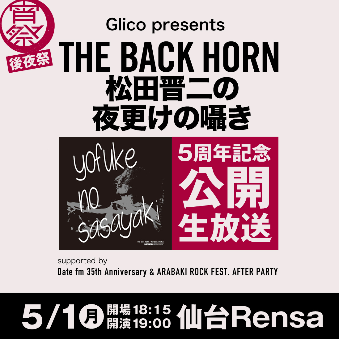 NEWSDate fm「Glico presents THE BACK HORN 松田晋二の夜更けの囁き」が今年5周年を迎えるのを記念して、番組初の公開生放送を実施!2017.03.29