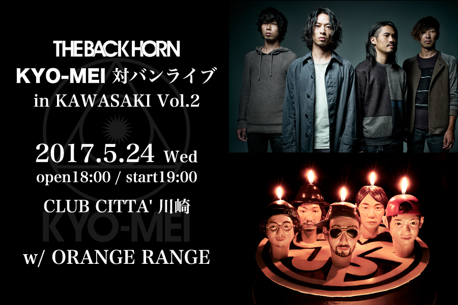 NEWS「KYO-MEI対バンライブ」の川崎Vol.2公演の対バンがORANGE RANGEに決定!2017.03.08