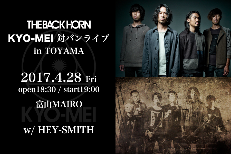 NEWS「KYO-MEI対バンライブ」の富山公演の対バンがHEY-SMITHに決定!2017.02.06