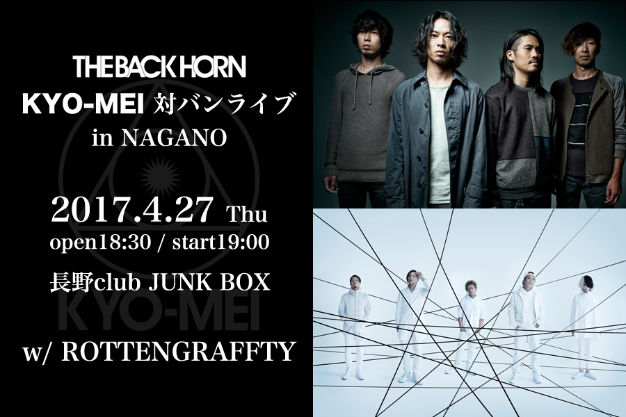 NEWS「KYO-MEI対バンライブ」の長野公演の対バンがROTTENGRAFFTYに決定!2017.02.06