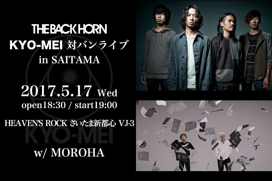 NEWS「KYO-MEI対バンライブ」のさいたま公演の対バンがMOROHAに決定!2017.02.15