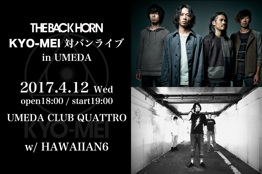NEWS「KYO-MEI対バンライブ」の梅田公演の対バンがHAWAIIAN6に決定!2017.02.06