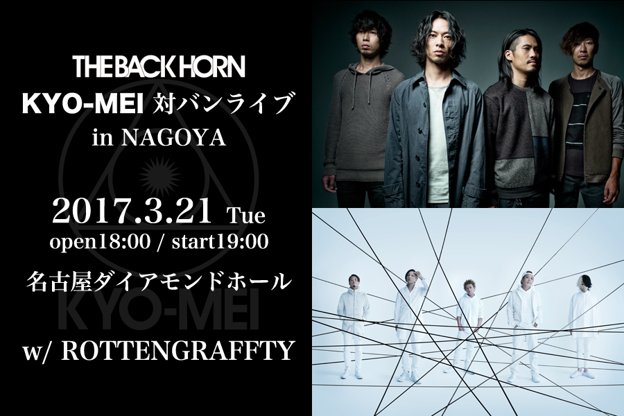 NEWS「KYO-MEI対バンライブ」の名古屋公演の対バンがROTTENGRAFFTYに決定!2017.01.23