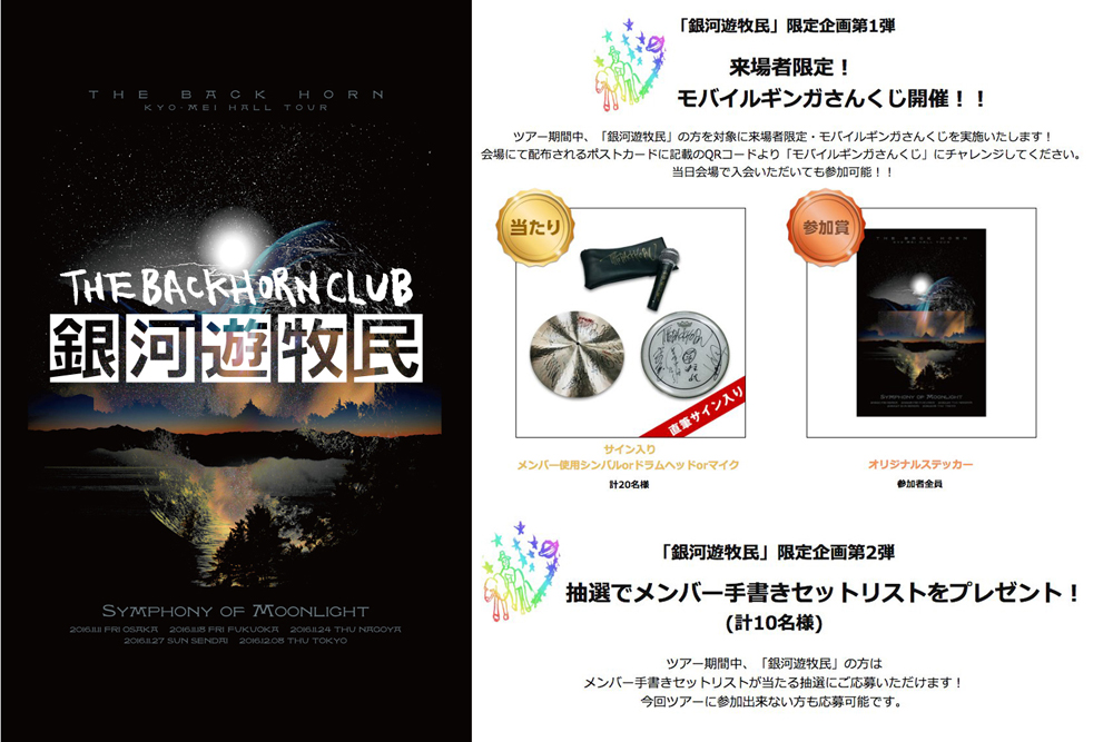 NEWSTHE BACK HORN「KYO-MEIホールツアー」〜月影のシンフォニー〜 銀河遊牧民ツアー連動企画!2016.11.10
